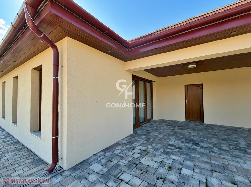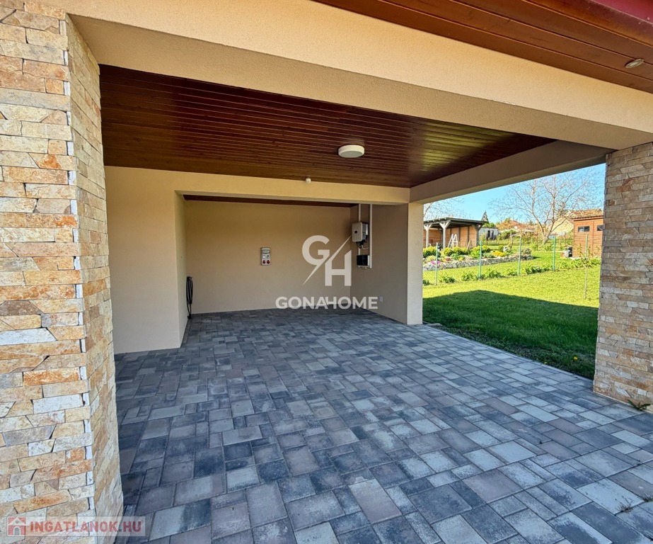 Az ingatlan része egy fedett, 50 m²-es terasz, továbbá egy mosdóval ellátott kerti tároló, amely fűtés kialakításával akár irodaként is hasznosítható.