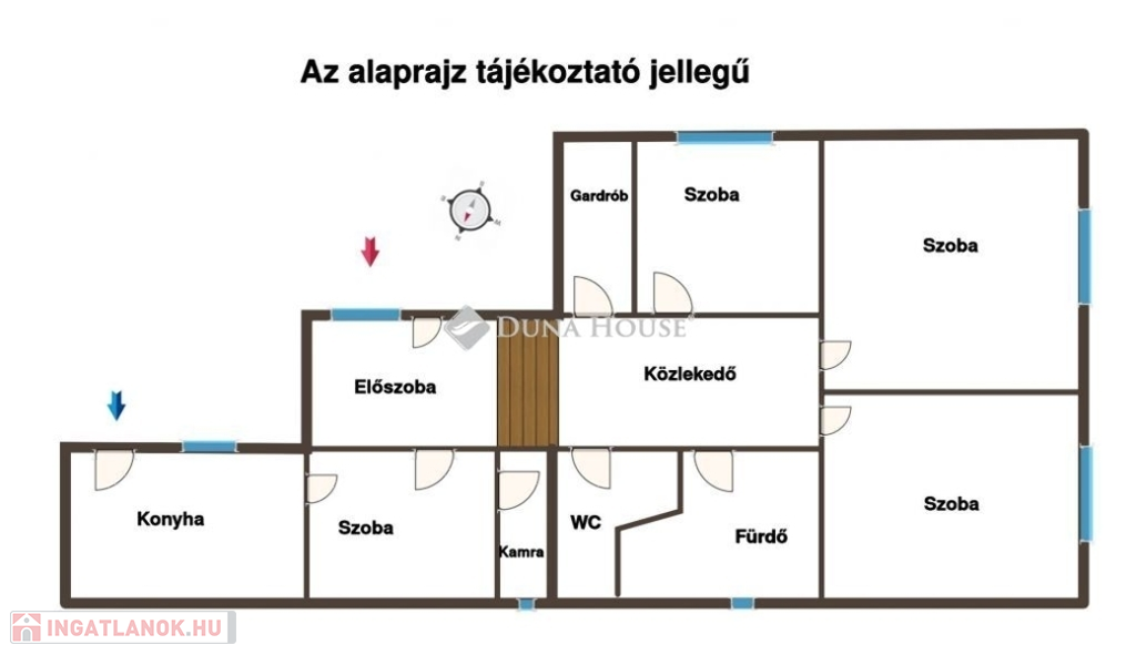 A házban 4 külön bejáratú szoba, valamint egy külön gardróbszoba biztosít kényelmes elrendezést.