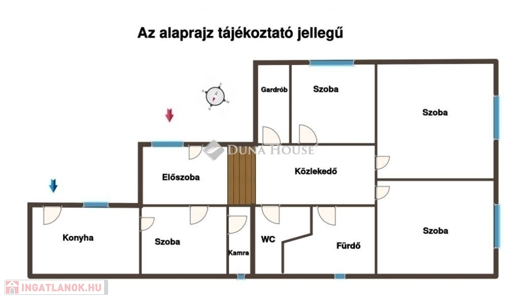 A házban 4 külön bejáratú szoba, valamint egy külön gardróbszoba biztosít kényelmes elrendezést. A hőszigetelt nyílászárók és a műanyag biztonsági bejárati ajtó gondoskodnak az energiatakarékosságról és a biztonságról. A fűtést gázkonvektorok biztosítják, de klíma is rendelkezésre áll a nyári meleg napokra.