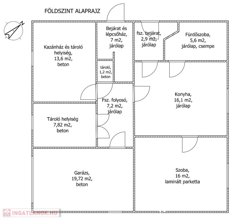 A padlóburkolatok a garázs, és a földszinti tárolók kivételével járólapos és parkettás, laminált parkettás burkolatok.
