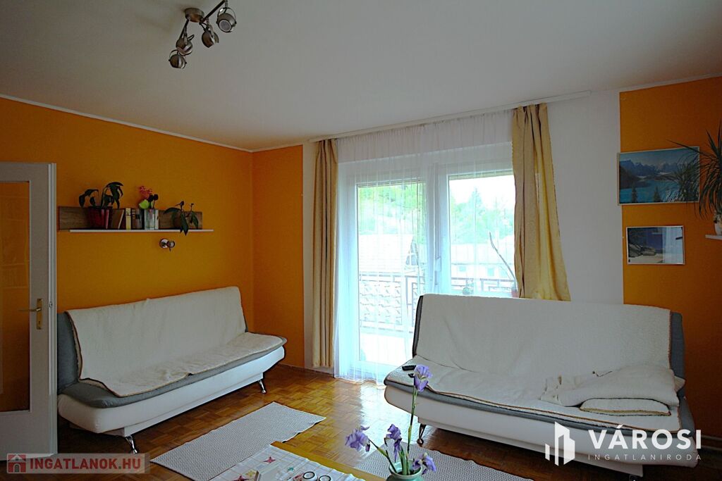A felső szinten 100 m2-es, három szobás lakás van konyhával, nagy konyhai tárolóhelyiséggel, fürdőszobával, külön WC-vel, és egy nagy erkéllyel.