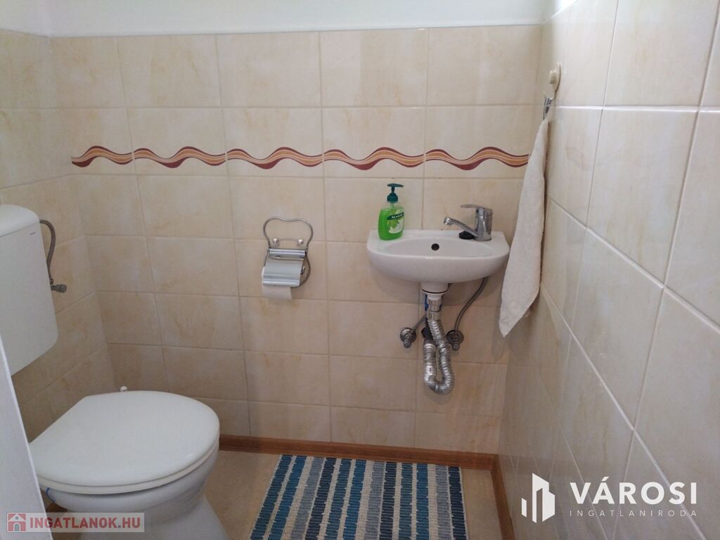 A földszinten 50 m2-es lakás található egy szobával, konyhával, fürdőszobával. Itt még garázs, tárolóhelyiségek, és kazánhelyiség is van.