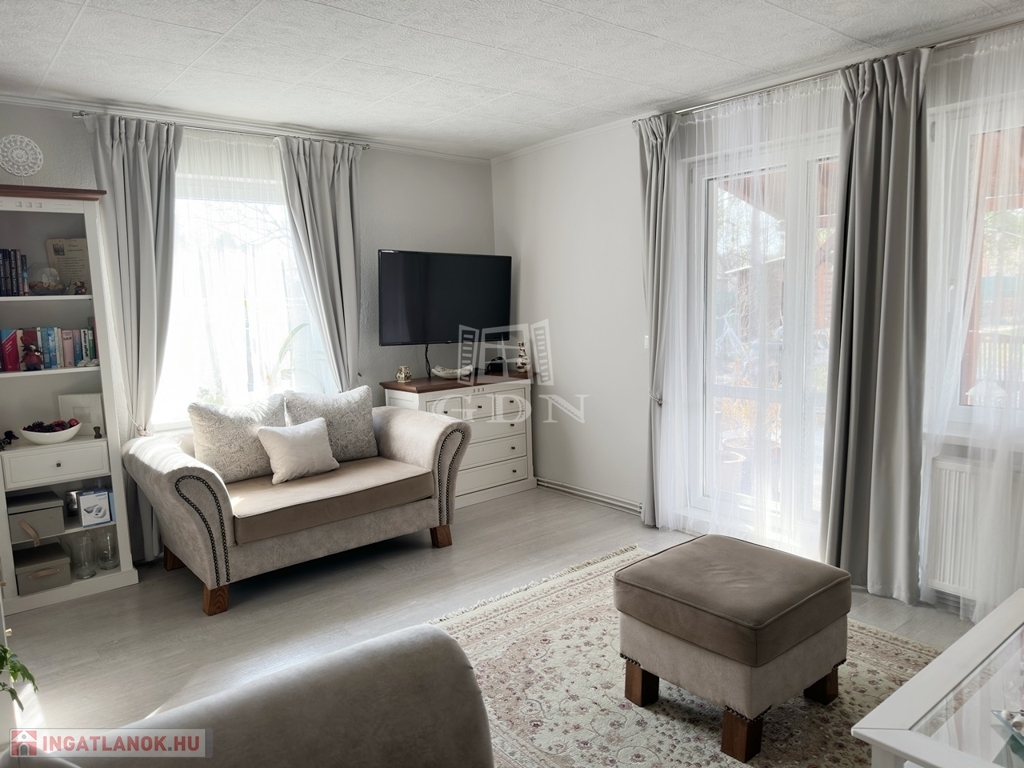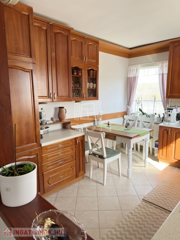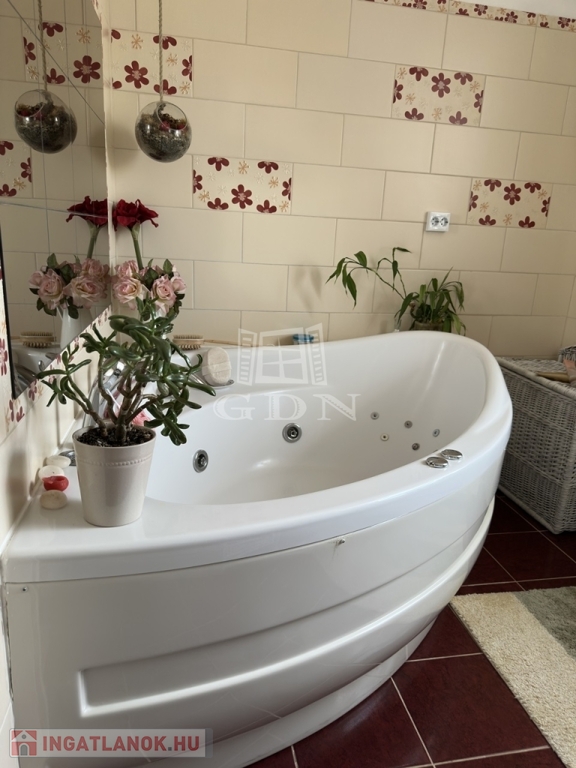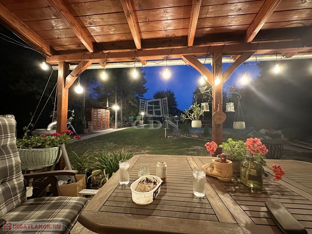 Az épület a 90-es években beton alapra, tégla falazattal épült, külső szigeteléssel ellátott, betoncserép tetőzettel rendelkezik (110 nm). A parkosított kertben (885 nm) medence, a kert végében kutya kennel, tárolók és baromfi tartásra kialakított alkalmas udvarrész is található a málna, eper és veteményes kert mellett. Az előkertben egy fedett autóbeálló valamint még egy gépkocsi beálló is található.