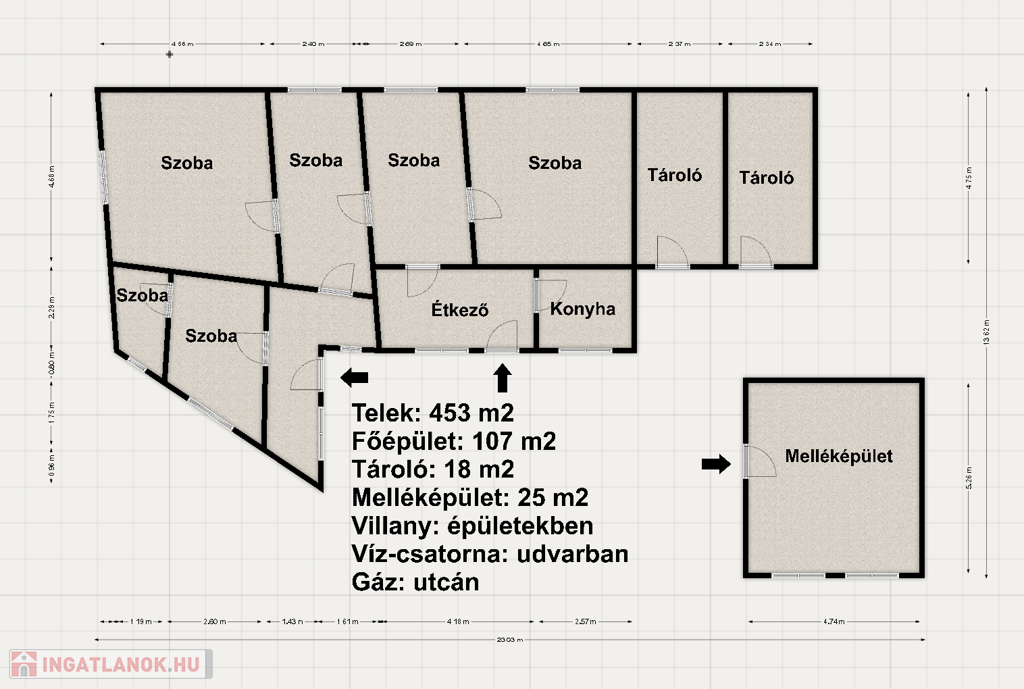 -Az udvaron található egy 25m2-es, melléképület, ami akár üzletnek is kialakítható. Emellett vannak még ólak, kisebb tárolók
