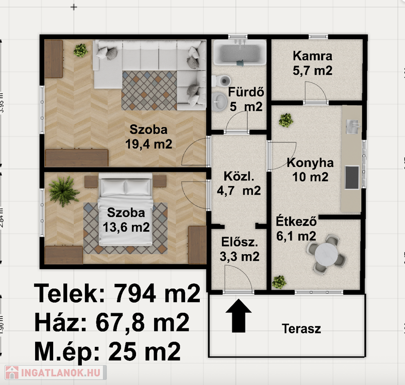 - Az épület mögötti üres terület felé még lehet bővíteni 1-2 szobával a házat