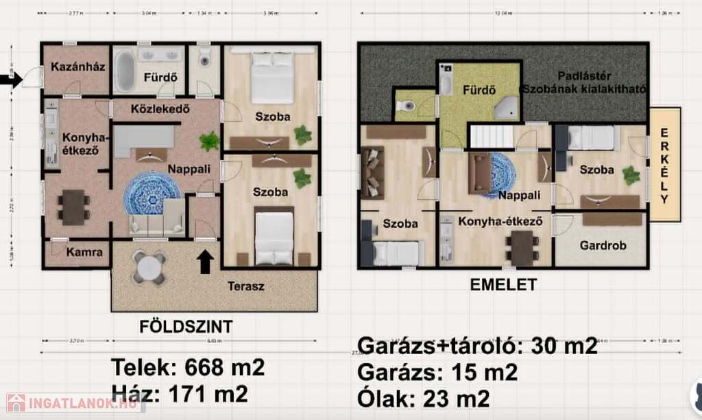 -Az emeleten található padlástér beépítésével még egy tágas hálószobát lehet kialakítani