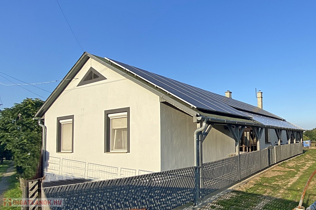 A 132 nm-es, szigetelt, 34 db napelemmel felszerelt, földszintes ház 2005-ben épült, 3346 nm telken helyezkedik el. Nettó alapterülete 108 nm, ahol 3 szoba, konyha, fürdőszoba, wc, és egy nagy nappali áll rendelkezésre.