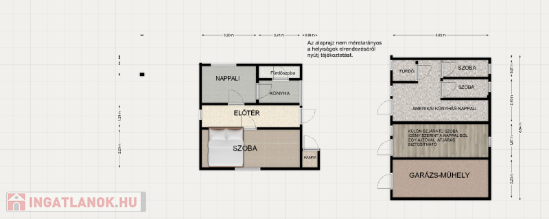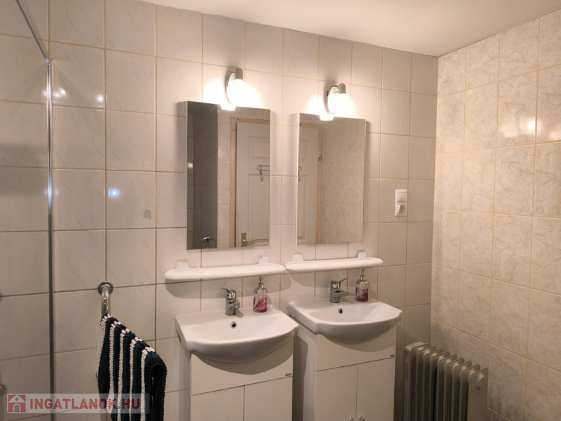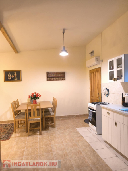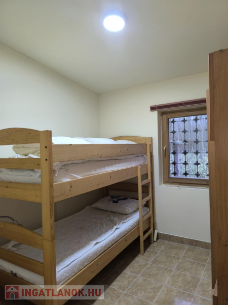 2. épület – 2010-ben épült, modern tégla házAmerikai konyhás nappali, 3 hálószoba, fürdő + WC, 43,71 nmKözéprészén külön bejáratú nagy hálószoba 23,4 nm, hátul tágas műhely 73,7 nm – minimális átalakítással akár harmadik lakássá alakítható.Fűtés: klíma + kandalló, meleg víz: bojler.Tető: cseréplemez.