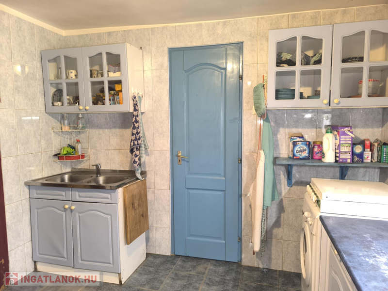 1. épület – 62,9 m²-es, vályogfalazatú, gondosan karbantartott házTágas előtér, nappali, hálószoba, konyha, fürdő + WC, kamra és kertkapcsolatos terasz.Fűtés: vízteres kandalló + inverteres klíma.Meleg víz: villanybojler.Az épület azonnal költözhető, teljes berendezéssel.