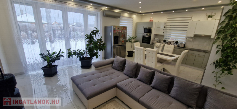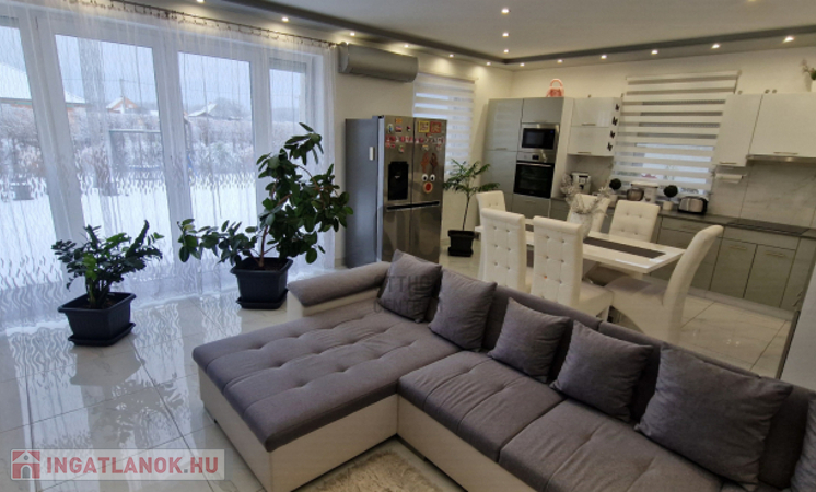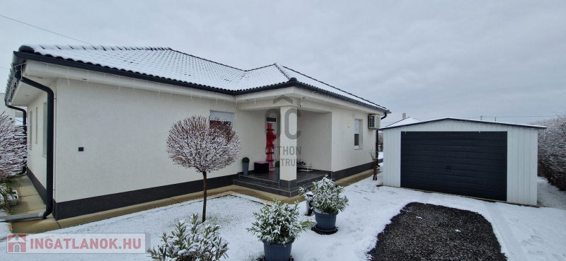Újszerű, igényes, modern, földszintes, önálló családi ház, parkosított, kert, Mikepércs