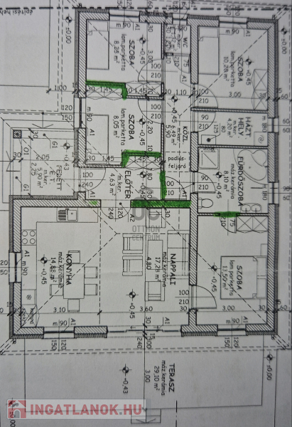* 4 külön nyíló szoba, laminált parketta burkolattal