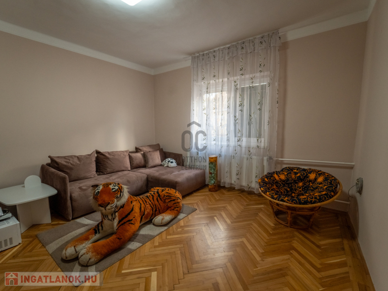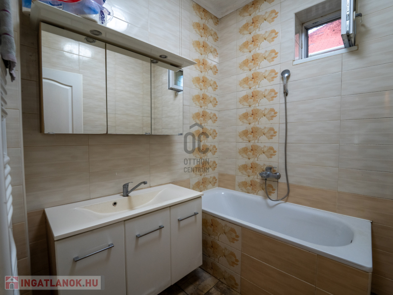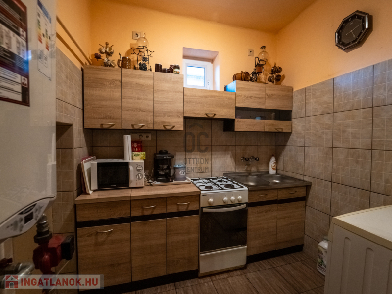 A 68,8 m²-es, jól beosztott házban zárt előtér (+3,84 m²), folyosó, 2 és fél szoba, konyha és étkező kapott helyet. A fürdőszoba frissen, 4 éve lett felújítva, a nyílászárók és az elektromos vezetékek is cserélve lettek. Télen gázfűtés és vegyes tüzelésű kazán gondoskodik a melegről, nyáron pedig a vastag falak miatt nincs szükség klímára. A ház folytatásában egy 18+18 m²-es melléképület található, valamint egy 20 m²-es gyári lemezgarázs is a kényelmet szolgálja.