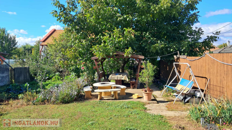 Az alsó szinten nagyméretű terasz, a felső emeleten pedig erkély nyújt kellemes pihenőhelyet. A nagy alapterületű pince akár két autó tárolására alkalmas garázst is magában foglal. A parkosított kertben filagória és bográcsozóhely szolgálja a kikapcsolódást és a közös családi programokat. A környék nyugodt, forgalommentes utcában fekszik, ugyanakkor a központ és a buszmegálló is mindössze 10 perc sétára elérhető.