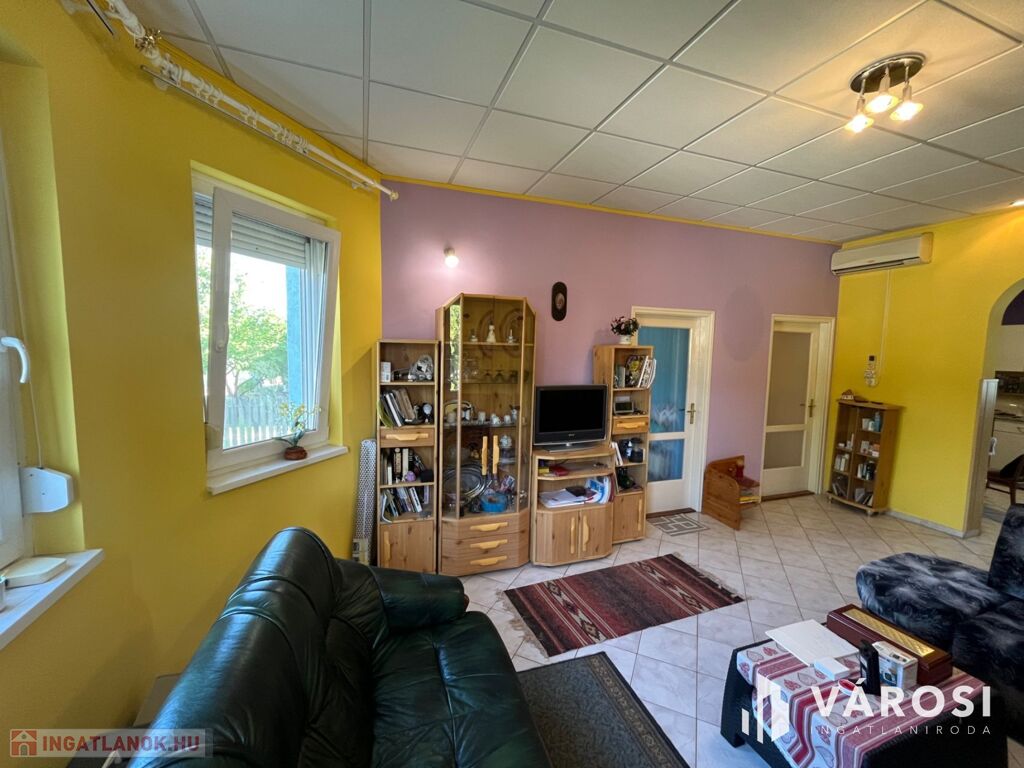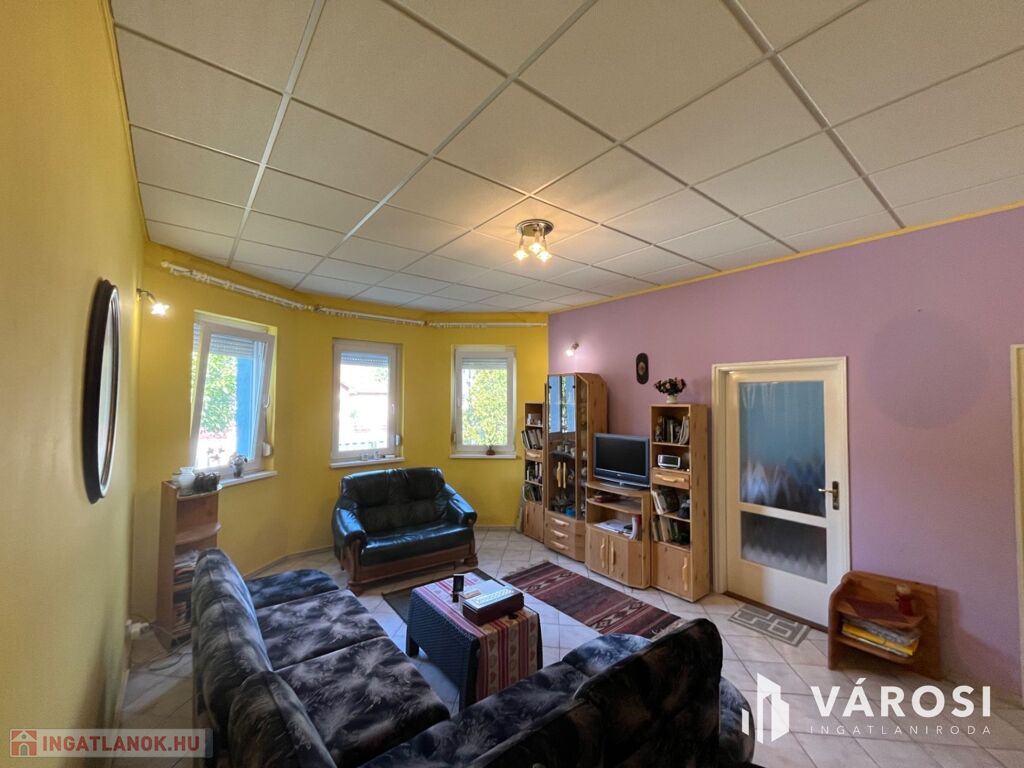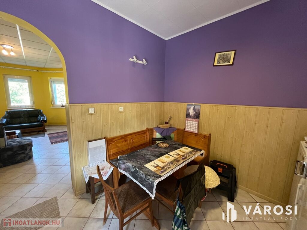 Fedezze fel ezt a kiváló állapotú, 95 m²-es lakóterületű, minden igényt kielégítő otthont, amely 1100 m²-es, parkosított telken helyezkedik el. Az ingatlan három tágas szobával, egy világos nappalival, külön fürdőszobával és WC-vel rendelkezik, melyek tökéletes kényelmet biztosítanak a mindennapokban.