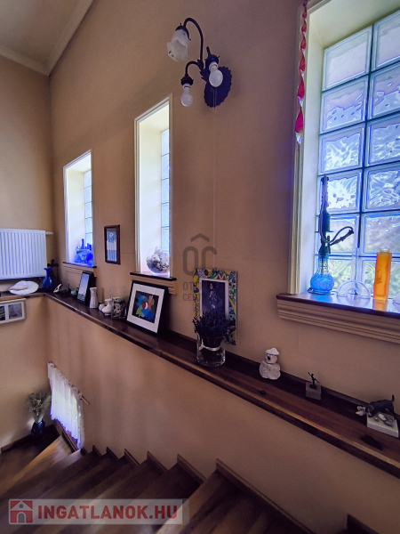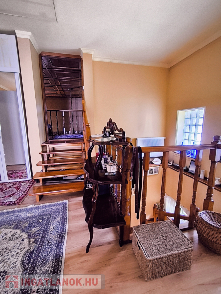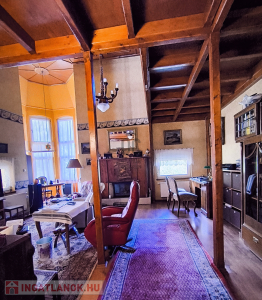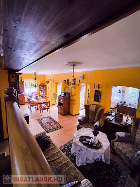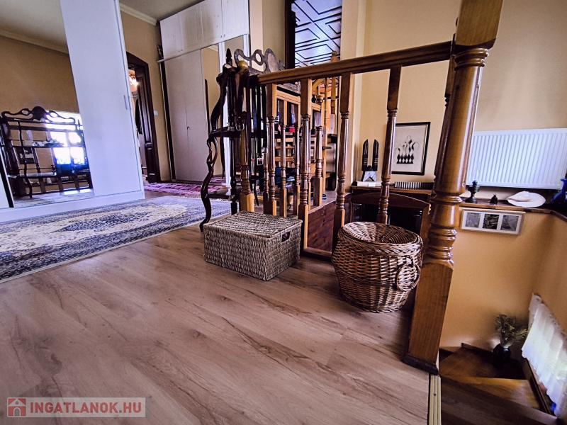 A ház 250 négyzetméteres, négy tágas szobája, társalgója, galériája különleges hangulatot nyújt.