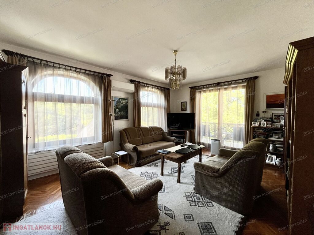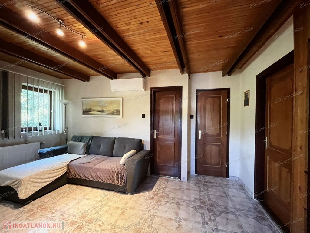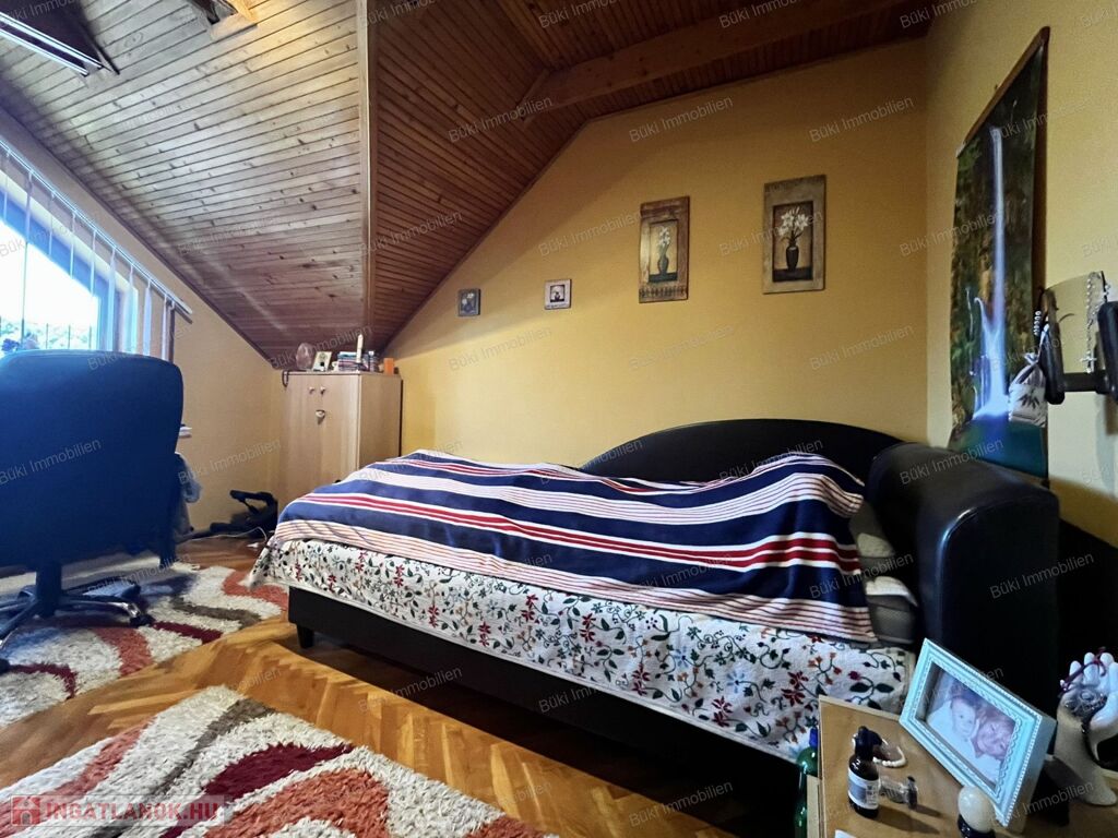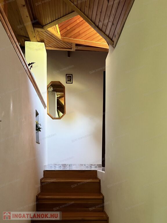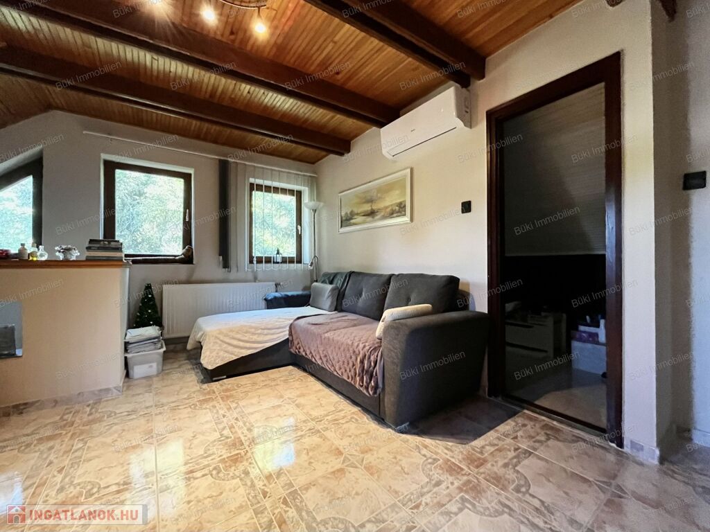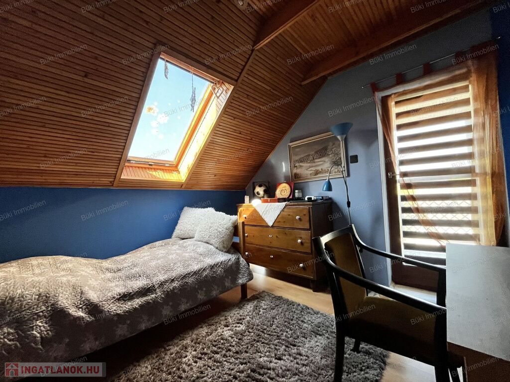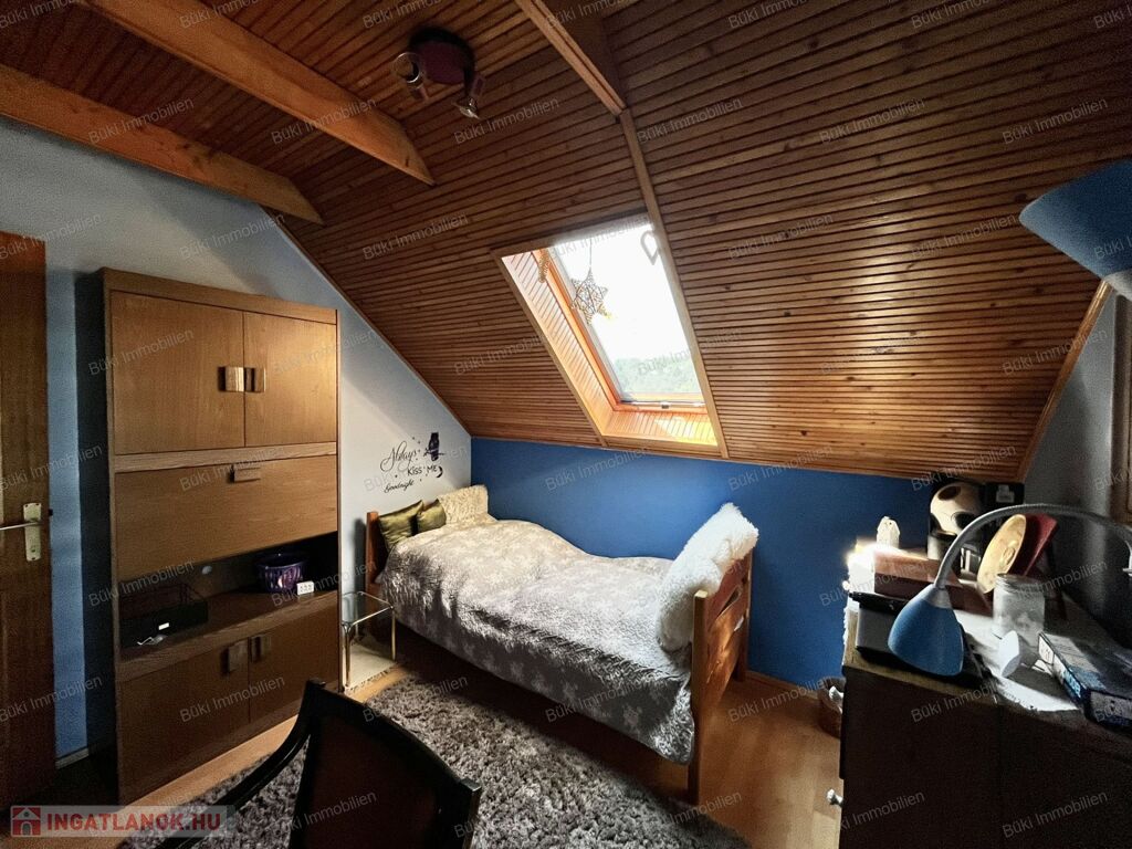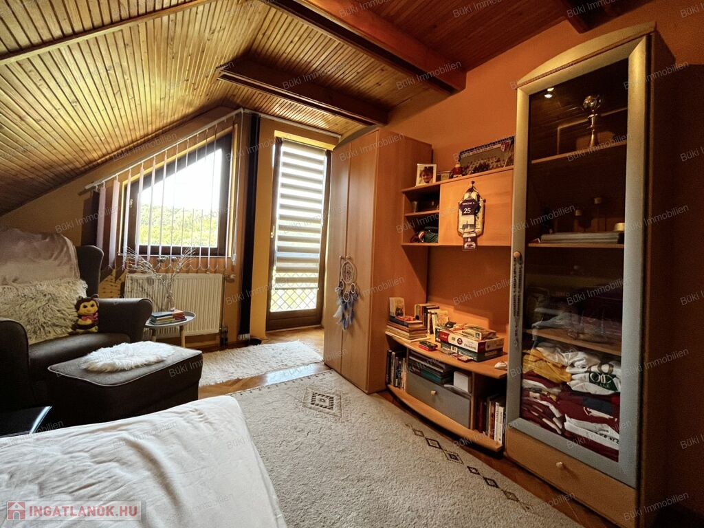Az emelet egy igazi kis birodalom: a természetes fa burkolatok melegséget és otthonosságot sugároznak, a hangulatos terek pedig igazán különlegessé teszik ezt a szintet. A nappali mellett három hálószoba, egy kádas fürdőszoba és egy saját konyha található, így az ingatlan akár többféle lakóközösség igényeit is kényelmesen kielégítheti. Ráadásul a ház szinte minden ablakából pazar kilátás nyílik, így bármerre nézünk, a természet szépsége tárul elénk.