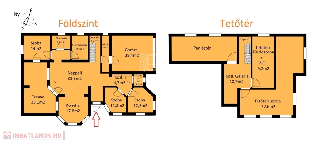 A tetőtér beépítéses, 3 fürdőszobás ház minden igényt kielégít.