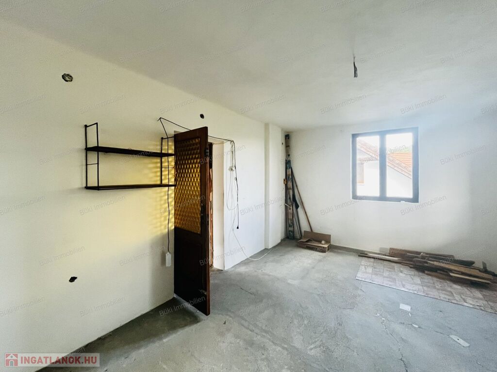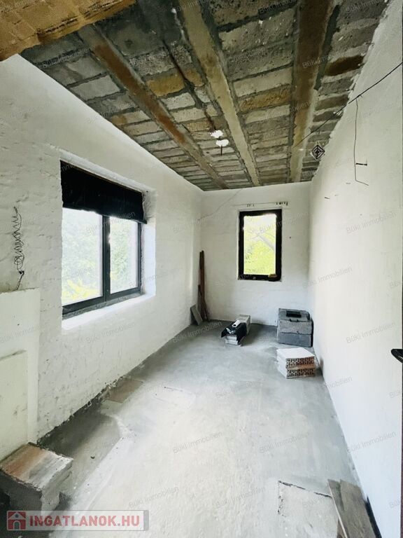 Az alsó szinten konyha, fürdőszoba, WC és két szoba található, a felső szinten pedig két tágas szoba kapott helyet, amelyek közül az egyik erkélyes, gyönyörű kilátással. Az ingatlan körülbelül 70%-os készültségi fokon áll, de minden szükséges anyag – a csempétől a fürdőkádig – rendelkezésre áll, így az új tulajdonos saját elképzelései szerint fejezheti be az otthont, anélkül, hogy bontani vagy újraépíteni kellene.