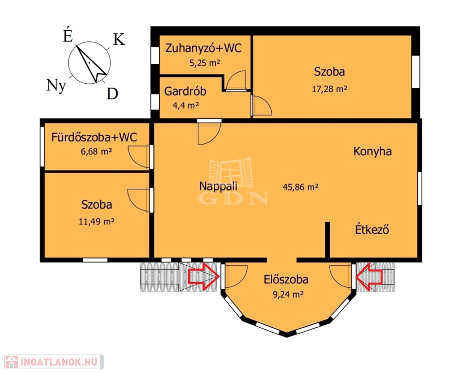 A nyílászárók minőségi fa ajtók és ablakok, 2 rétegű hőszigetelő üveggel ellátva.