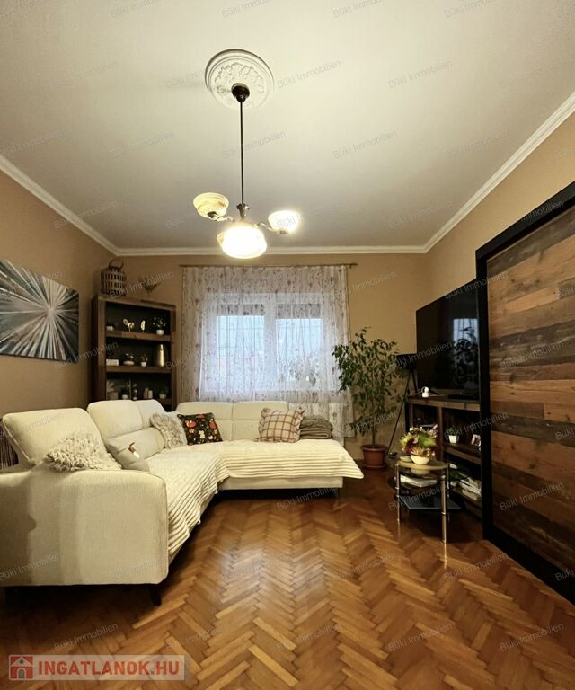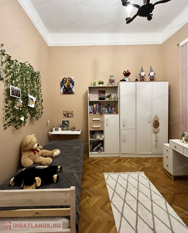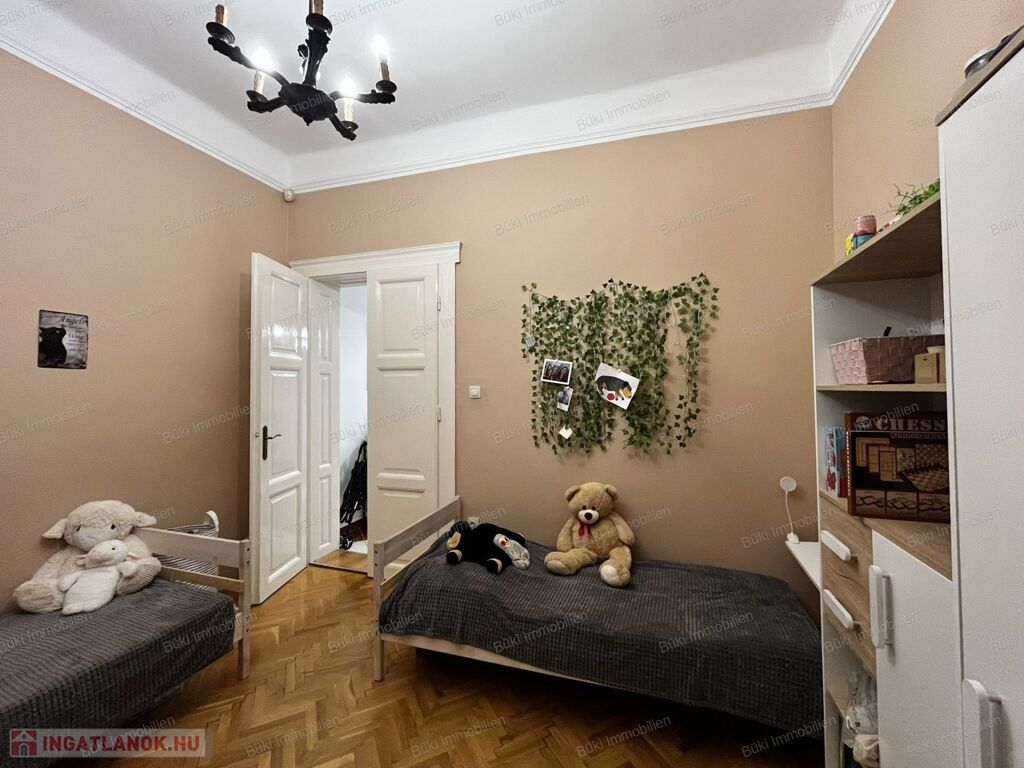 A lakás három külön bejáratú szobát kínál. A szobák nagyméretű ablakaiból bőséges természetes fény árad be, ami egész nap világossá teszi a tereket. A parketta jó állapotú, klasszikus halszálkás mintázata pedig otthonos, időtálló hangulatot biztosít.