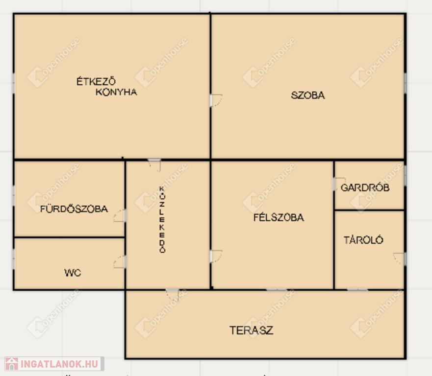 - aljzatburkolat: szobái laminált parkettásak, a többi helyiség hidegburkolattal rendelkezik
