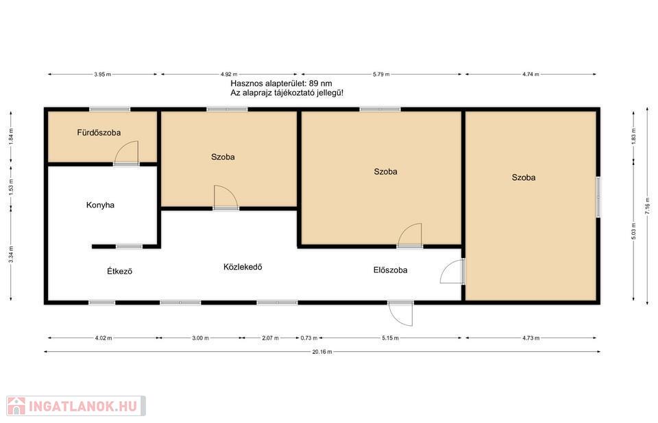 A 89 m² hasznos alapterületű lakóház utcafronti része 1967-ben épült vegyes (vályog és tégla) szerkezettel, majd 2005-ben téglából bővítették. Elrendezése praktikus: előtér, 3 szoba, konyha–étkező, fürdőszoba WC-vel. Az épület masszív szerkezetű, azonban teljes körű felújításra és korszerűsítésre szorul, így új tulajdonosa valóban a saját ízlésére formálhatja.