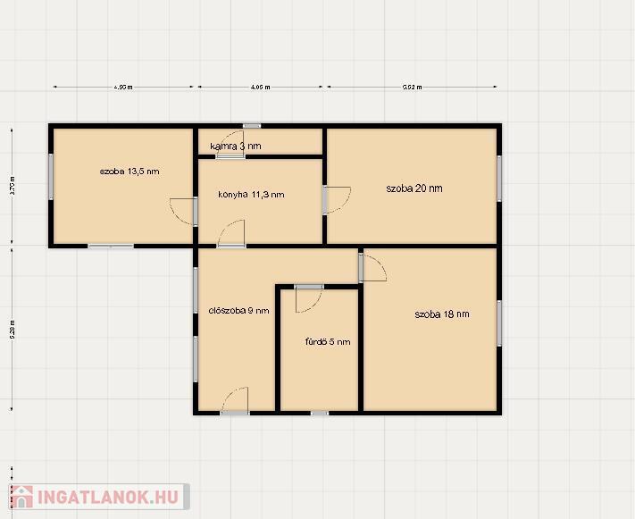 - 3 külön nyíló szoba /20, 18, 13,6 nm /