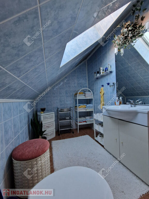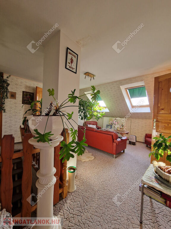 - tetőtér: közlekedőből kialakított stabil szerkezetű lépcsőn közelíthető meg a társalgó, fürdőszoba, két külön nyíló kényelmes méretű tetőtéri szoba melyek egyikéből utcafront felé kialakított erkély kapott teret