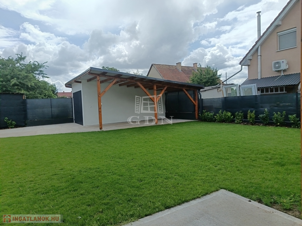 Az utcafronti kerítéshez az elektromos áram kivezetése megtörtént, melléképület, garázs és fedett beálló aljzatokkal, világítótestekkel ellátva.