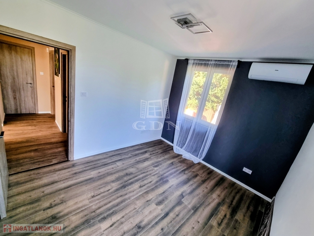 A nyílászárók háromrétegű hőszigetelt ablakok, az Ön nyugalma érdekében az ingatlan fel van szerelve riasztórendszerrel is.