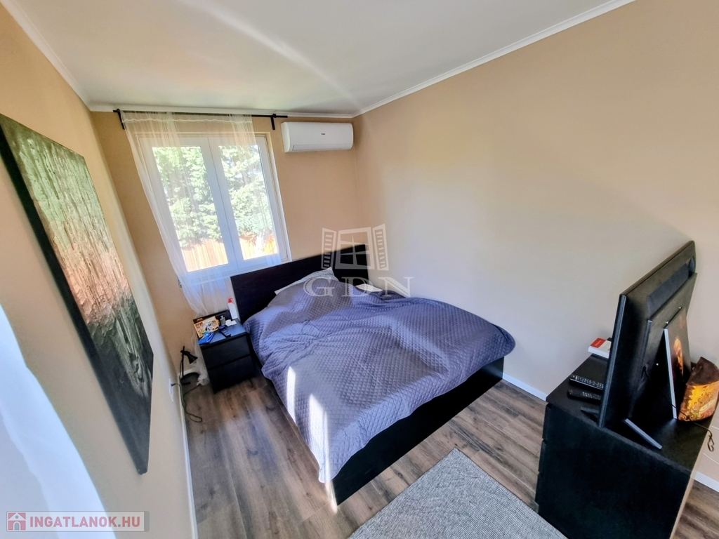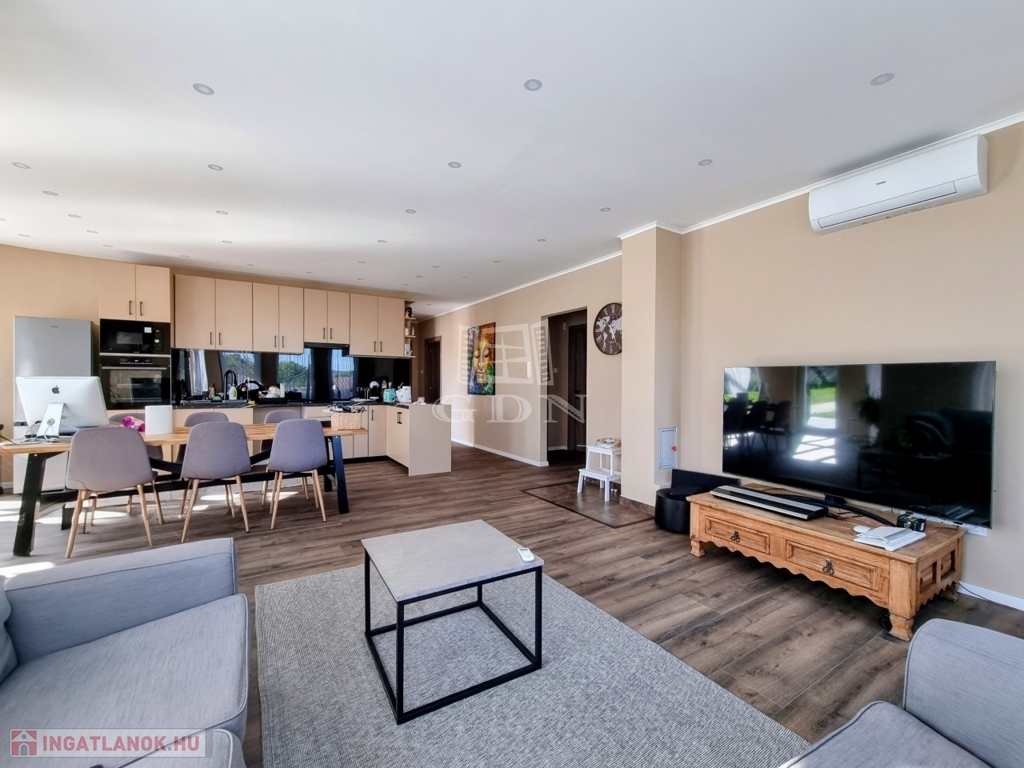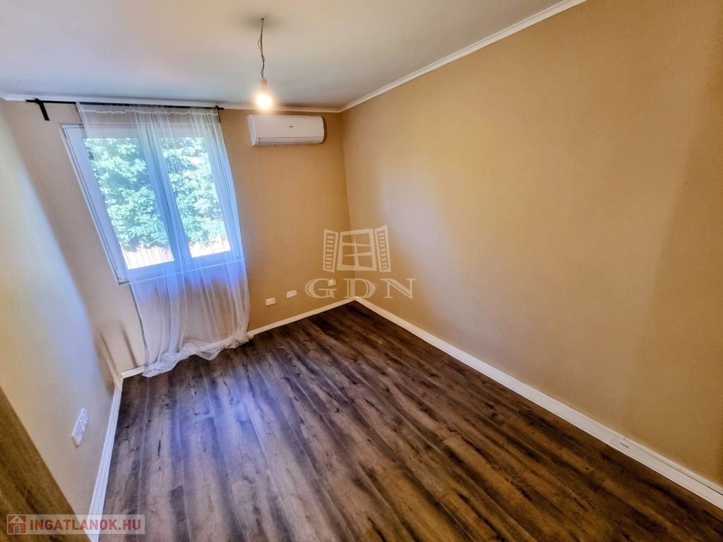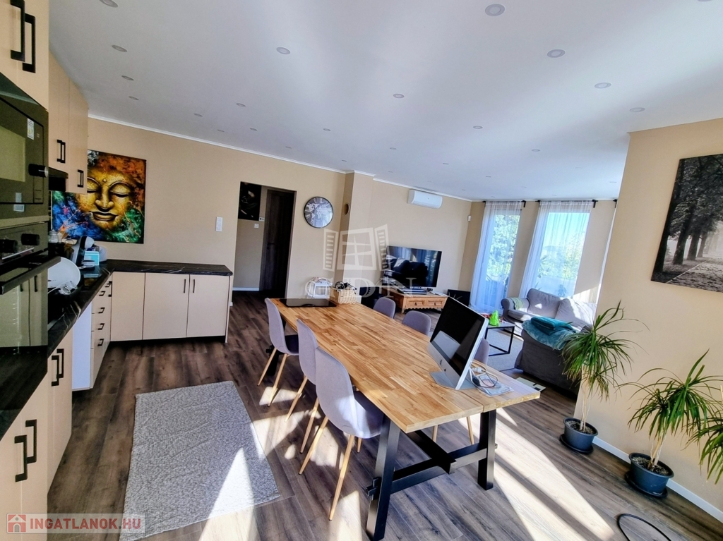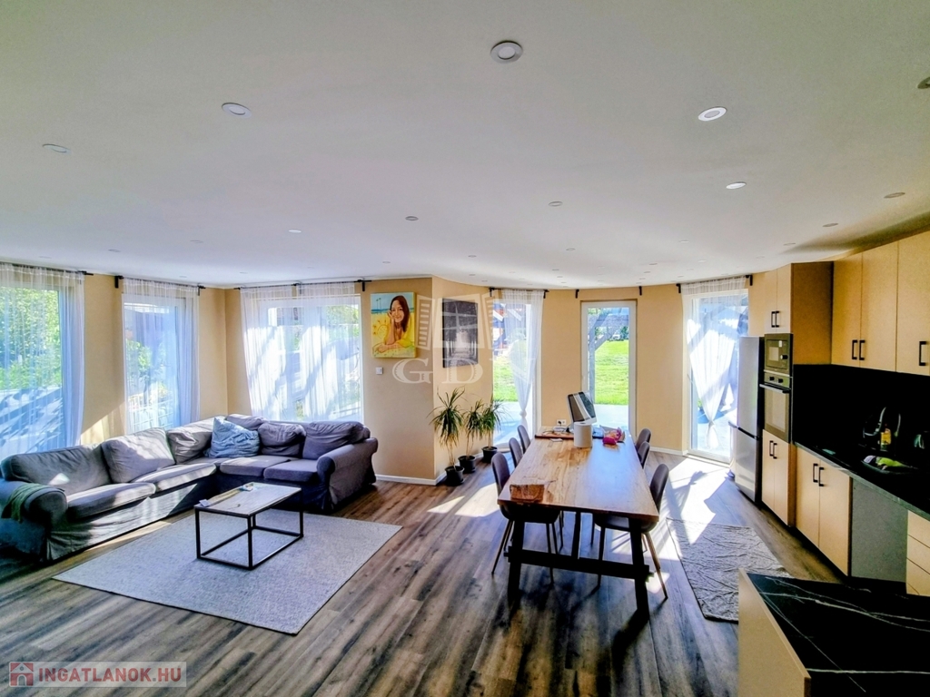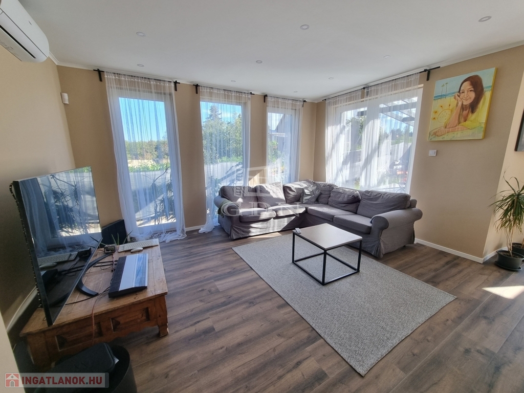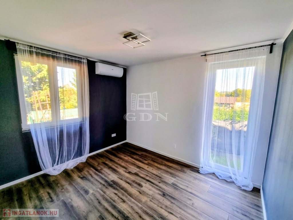 A nyílászárók háromrétegű hőszigetelt ablakok, az Ön nyugalma érdekében az ingatlan fel van szerelve riasztórendszerrel is.