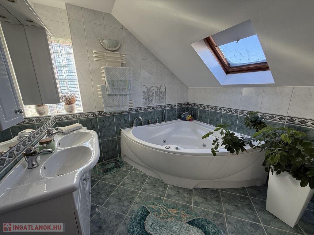 A ház alatt 60nm-es pince, a padláson további hasznosítható tér áll rendelkezésre.