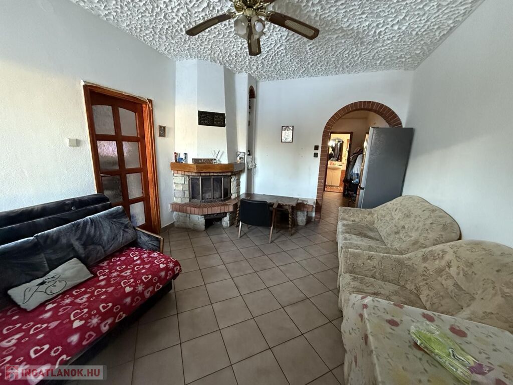 - 4nm-es fedett előtérből nyíló: tágas nappali kandallóval, hálószoba, közlekedő, konyha, zuhanyzós fürdőszoba.