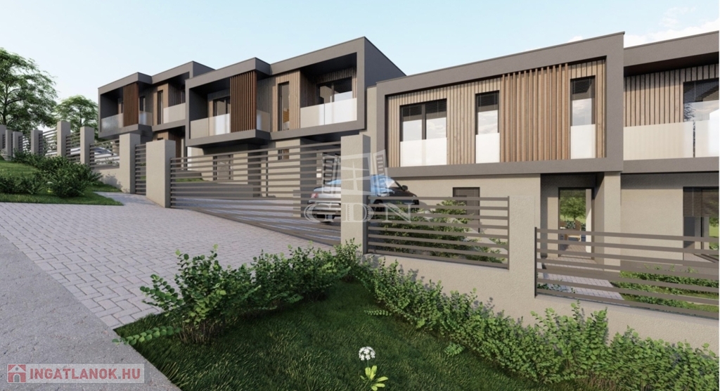 ingatlanonként két gépkocsi számára biztosított, ebből egy parkolóhely a ház előtti területen kialakítható.