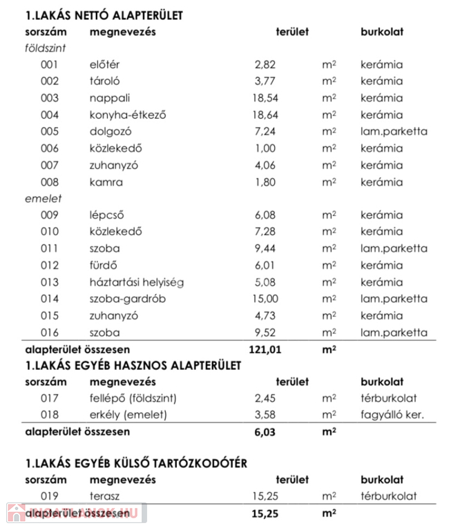 • Burkolatok: első osztályú, magas minőségű burkolatok minden helyiségben