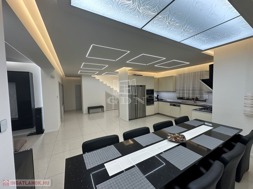 Eladásra kínálunk egy kiváló állapotú, 191 m²-es családi házat Mogyoród egyik legkedveltebb utcájában. Az ingatlan egy 788 m²-es, gondozott telken helyezkedik el, lenyűgöző panorámás kilátással.