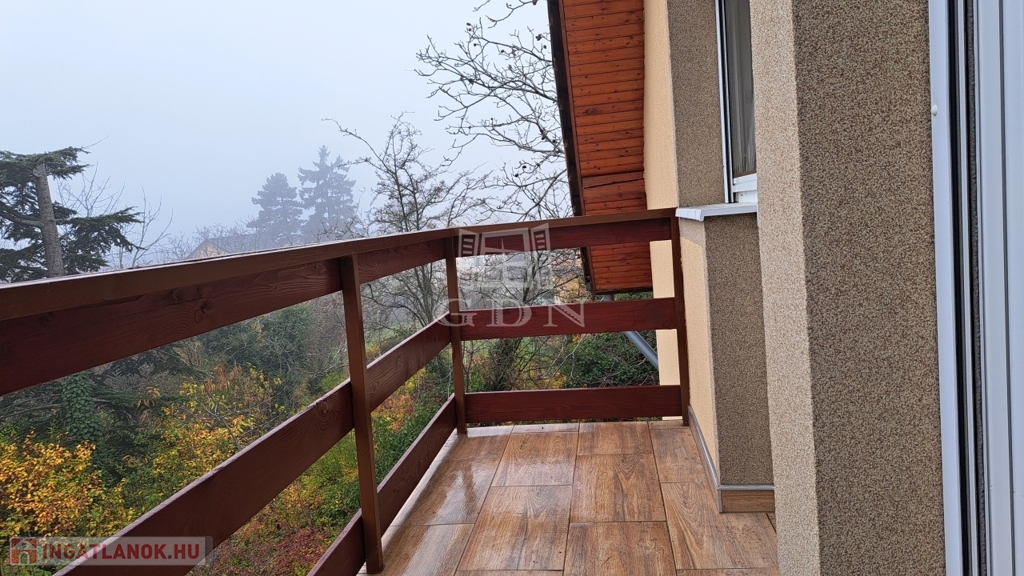 Az emelet két hálószobát, egy gardróbszobát, fürdőszobát és egy erkélyt kínál.