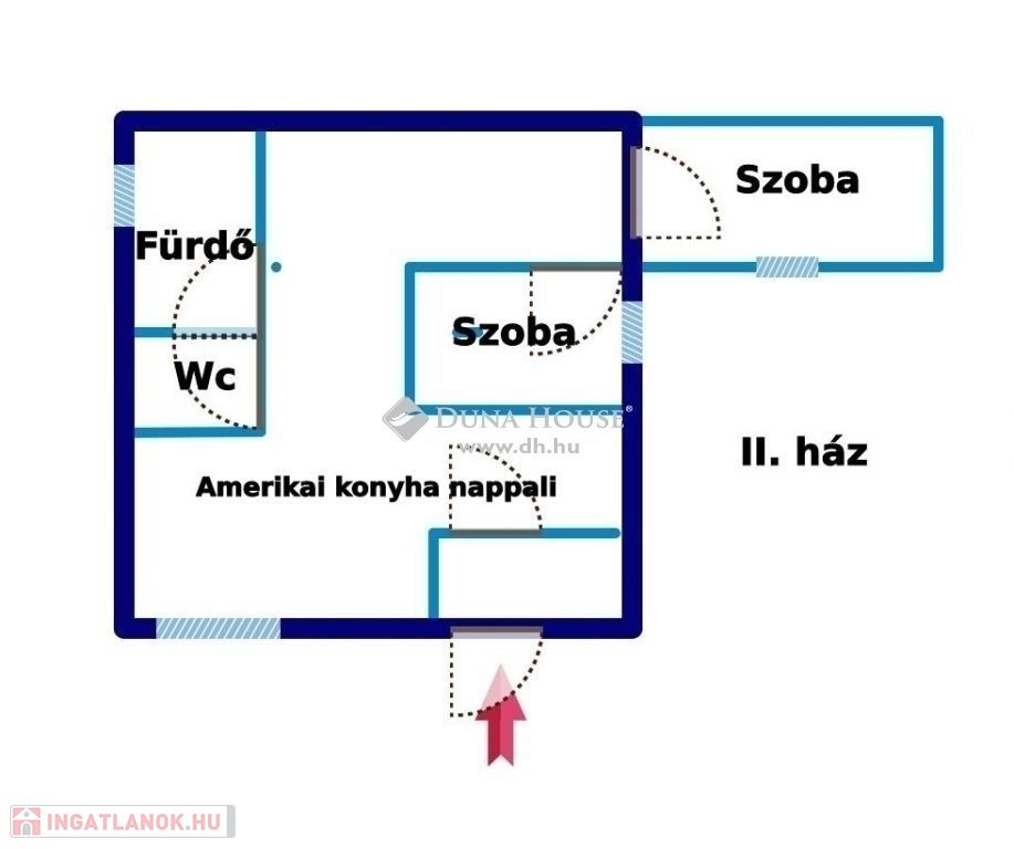 A második lakrész 80 m²-es, szintén amerikai konyhás nappalival és két különálló szobával.