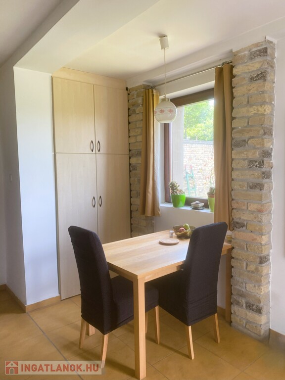Az ingatlan jellemzői: Ez az 55 m2 alapterületű otthon teljes felújításon esett át a tetőszerkezetet is beleértve, a villanyvezetékeket kicserélték, új fa nyílászárók lettek behelyezve. Falazata tégla, mely 10 cm- es szigetelést kapott. Nappali, konyha, ebédlő, melyek egy légtérben helyezkednek el, hálószoba és fürdőszoba található benne.