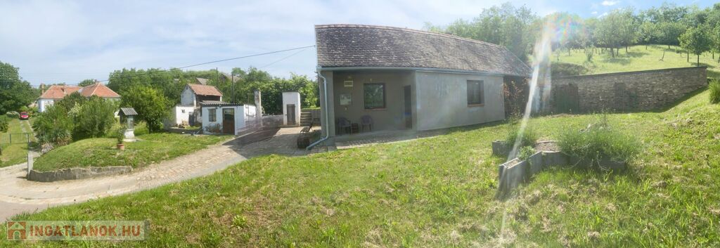 Telek: A 2 helyrajziszámon elterülő, mindösszesen 4.000 m2- es, gazdálkodásra alkalmas, permetszer mentes birtokon gyümölcsös (kb. 50 db. fa), konyhakert, pince, présház, télikert, nyárikonyha, szőlőlugas, kiépített parkoló és tárolók találhatóak. A locsolásról fúrt kút gondoskodik.