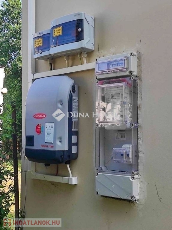 Az ingatlan egyik kiemelkedő előnye az 5,75 kW teljesítményű napelemrendszer, amely jelentősen csökkenti a rezsiköltségeket, miközben környezetbarát megoldást kínál.