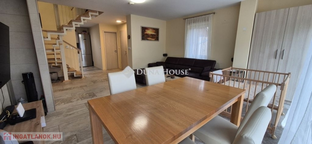 Tehát, ha egy modern, napfényes családi házat keres, közel a természethez, de mégis modern kényelmi szolgáltatásokkal felszerelve, ne keressen tovább! Jöjjön el, és tekintse meg ezt a csodálatos ingatlant, amely tökéletes választás mindenki számára, aki a nyugodt és kényelmes otthonát keresi a város zajától távol, mégis könnyen megközelíthető helyen a Dunától pár lépésnyire.Eladásra kínálunk egy korszerű, 2019-ben épült, 15 centiméteres szigeteléssel ellátott tégla szerkezetű, napfényes családi házat. A tágas otthonunk békés kertre néző hatalmas Schüco hőszigetelt ablakokkal és hőszigetelt redőnnyel büszkélkedhet, melyek garantálják a nyugodt és természetközeli életet.Azok számára, akik a természet közelségét és a horgászatot kedvelik, fontos megjegyezni, hogy a Duna mindössze 50 méterre helyezkedik el az ingatlantól, így a vízparthoz való könnyű hozzáférést biztosítva.Az udvaron található egy hangulatos grillterasz kemencével, bográcsozóval és grillezővel, ami biztosítja a kiváló helyszínt a baráti összejövetelekhez, vagy csak egy nyugodt esti pihenéshez a szabadban. A térkövezett, 2 autó parkolására alkalmas autóbeálló, valamint az elektromos kapu kényelmet és biztonságot nyújt az itt lakóknak.A szárazpince és egy 8 négyzetméteres melléképület további tárolási lehetőségeket kínál. Az otthon biztonságáról a telepített kamerarendszer gondoskodik, így mindig nyugodt lehet, amikor távol van. A rezsiköltségek alacsonyan tartását, H tarifás áramvételi lehetőség biztosítja.Az ingatlanban a melegről a gazdaságos puffertartállyal ellátott kondenzációs gázkazán mellett egy hangulatos kandalló is gondoskodik, ami az otthon melegét és a természetesség érzetét hivatott fokozni. Padlófűtés található az alsó és felső szinten egyaránt, ami külön-külön is szabályozható. A nyári melegben egy modern hűtő-fűtő klíma gondoskodik az itt lakók komfort érzetéről. A tágas, gépesített konyhabútorral felszerelt konyha minden igényt kielégít, legyen szó egy gyors reggeliről vagy egy nagyobb családi vacsoráról.További részletekért vagy egy személyes megtekintésért, kérjük, vegye fel velünk a kapcsolatot.