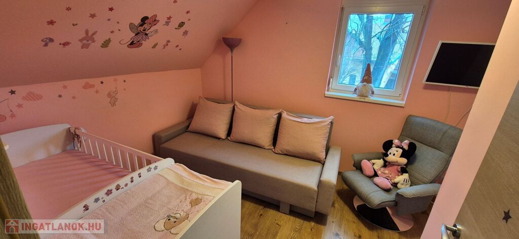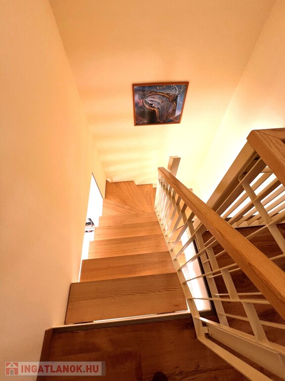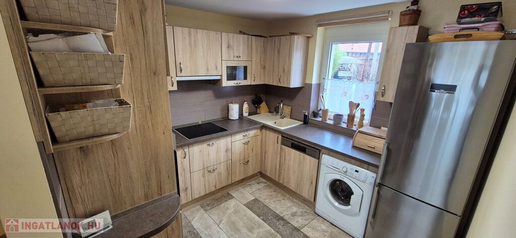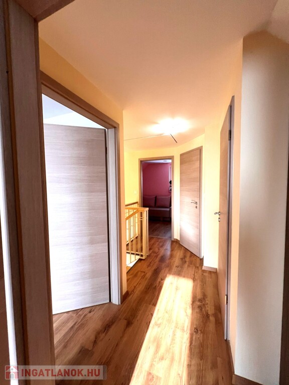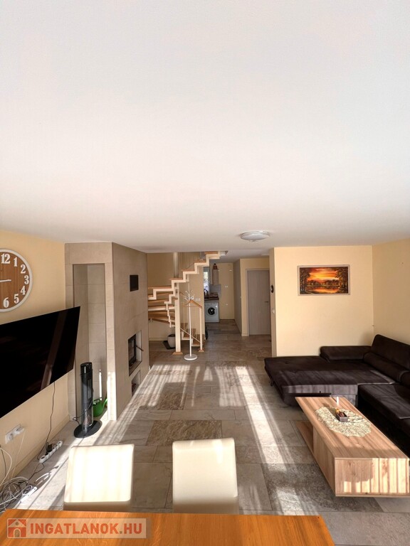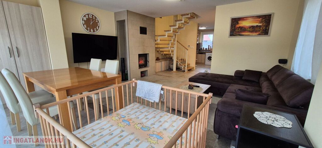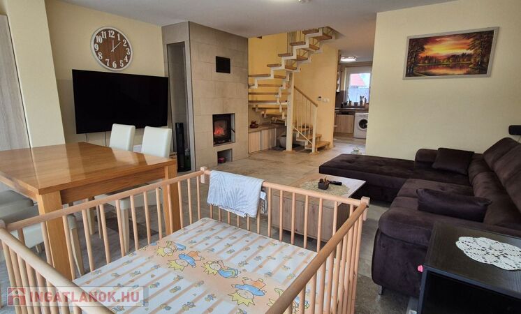 Az ingatlan jellemzői: A nagyobb, 100 m²-es, 2019-ben épült, 15 centiméteres szigeteléssel ellátott tégla szerkezetű épület alsó szintjén egy világos, tágas nappali, egy légtérben lévő gépiesített konyhával, előszoba, fürdőszoba és külön WC kapott helyet. Az emeleten fürdőszoba, WC, gardrób, tároló és jelenleg két hálószoba található, azonban ez bővíthető.
