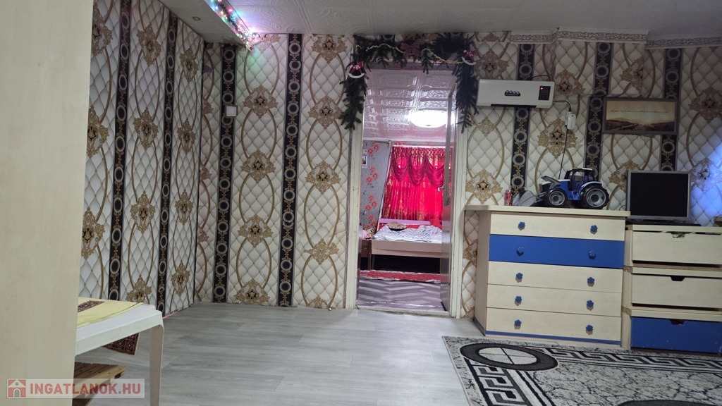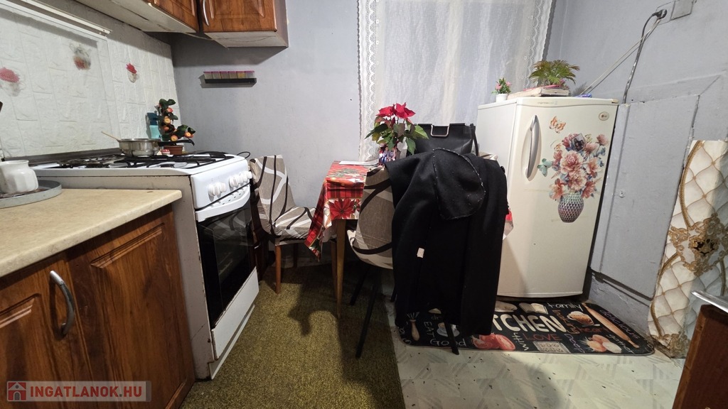 Helyiségek: szoba, étkező, konyha, folyosó, fürdőszoba WC-vel.