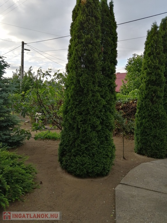 Minden közmű be van kötve: gáz, víz, villany, csatorna, valamint a locsoláshoz saját fúrt is van.