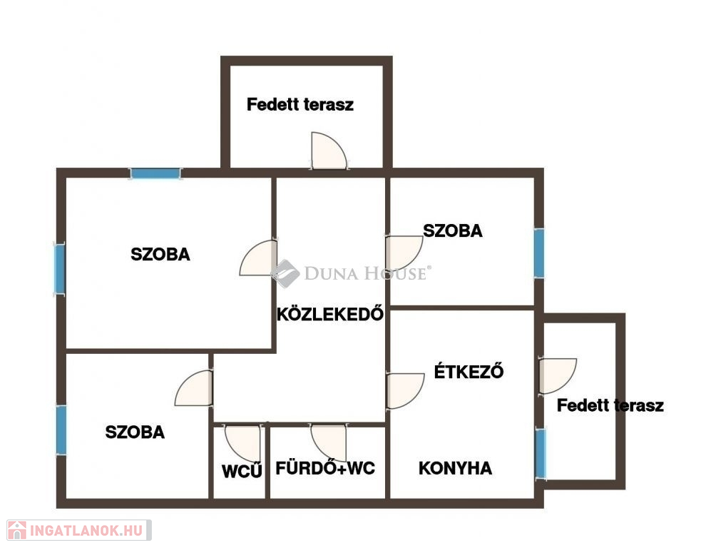 Kialakításra került 3 nagy méretű szoba, előszoba, külön wc, zuhanyzó+wc, konyha+étkező, kettő beépített fedett terasz.