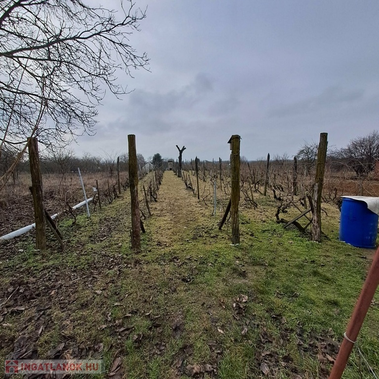 A telken gyümölcsfák, szőlő és egy szerszámtároló található!