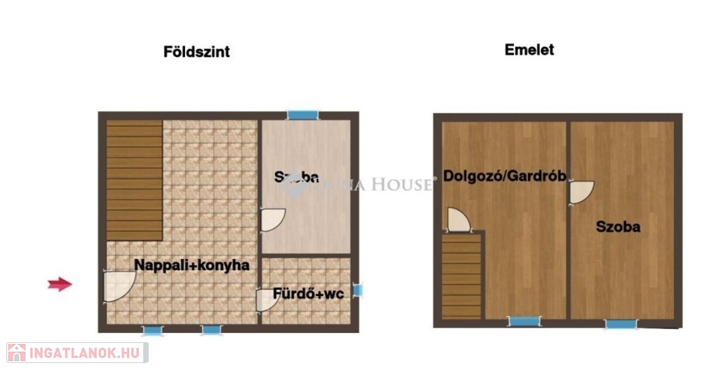 földszinten: nappali+konyha, szoba, fürdő+wc, pince a ház alatt
