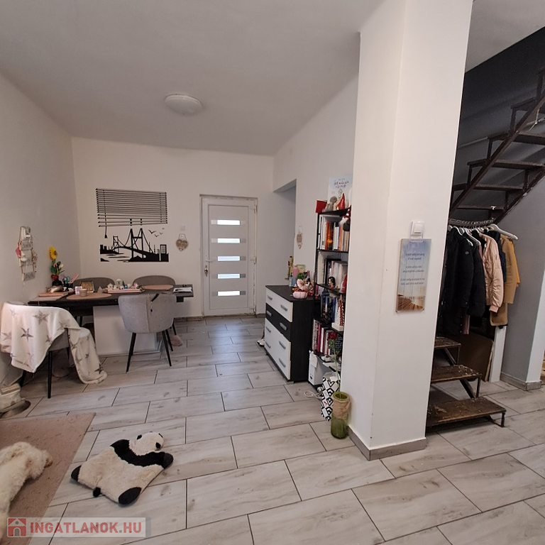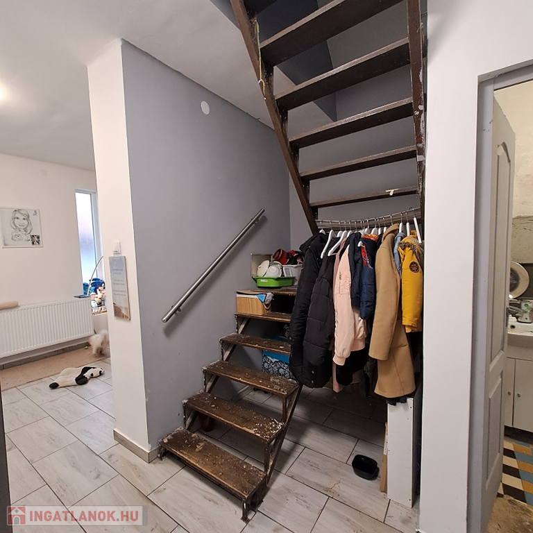 Az ingatlan lakóterülete kb. 120 m2, melyben a földszinten konyha-étkező, közlekedő, 2 szoba, fürdőszoba és WC, míg a tetőtérben 2 szoba található.