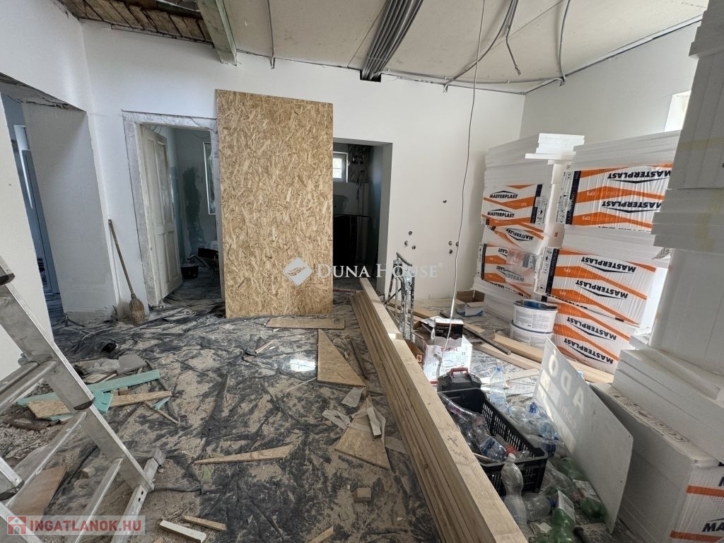 Megvásárlására kínálok egy felújítás alatt álló, kiváló adottságokkal rendelkező családi házat, amelyet saját ízlésére formálhat!A ingatlan tetőszerkezete megerősítésre került, és tartós, esztétikus cserepes lemezzel van fedve, biztosítva az időtállóságot és a modern megjelenést. Az épület falai gipszkartonozva vannak, így az új tulajdonosnak már csak a belső kialakításon és az apró részleteken kell dolgoznia, hogy otthonossá tegye ezt a különleges házat. Az alapvető korszerűsítések már megtörténtek: a villamoshálózat és a vízrendszer felújítva, a tetőtér beépítése pedig könnyen megvalósítható. A ház új, korszerű nyílászárókkal rendelkezik, ami biztosítja a kiváló hőszigetelést és az alacsonyabb rezsiköltséget. A felső szinten kialakítható egy új szoba és egy fürdőszoba is, mivel a víz- és lefolyókiállások már előkészítve várják a további munkálatokat. A telken belül található gáz, gáz órával amely egyszerűvé teszi a fűtés korszerűsítését, és egy kút is rendelkezésre áll, amely ideális öntözéshez vagy háztartási célokra.Az ingatlan közvetlen közelében iskolák, óvodák és boltok is elérhetők, így ideális választás családosoknak. Bár a ház a főút mentén található, mégis egy csendes, környezetben, távol a forgalom zajától. Ne hagyja ki ezt a remek lehetőséget keressen bizalommal, és tekintse meg ezt a nagyszerű adottságokkal rendelkező házat, ahol csak a befejezés van Önre bízva!